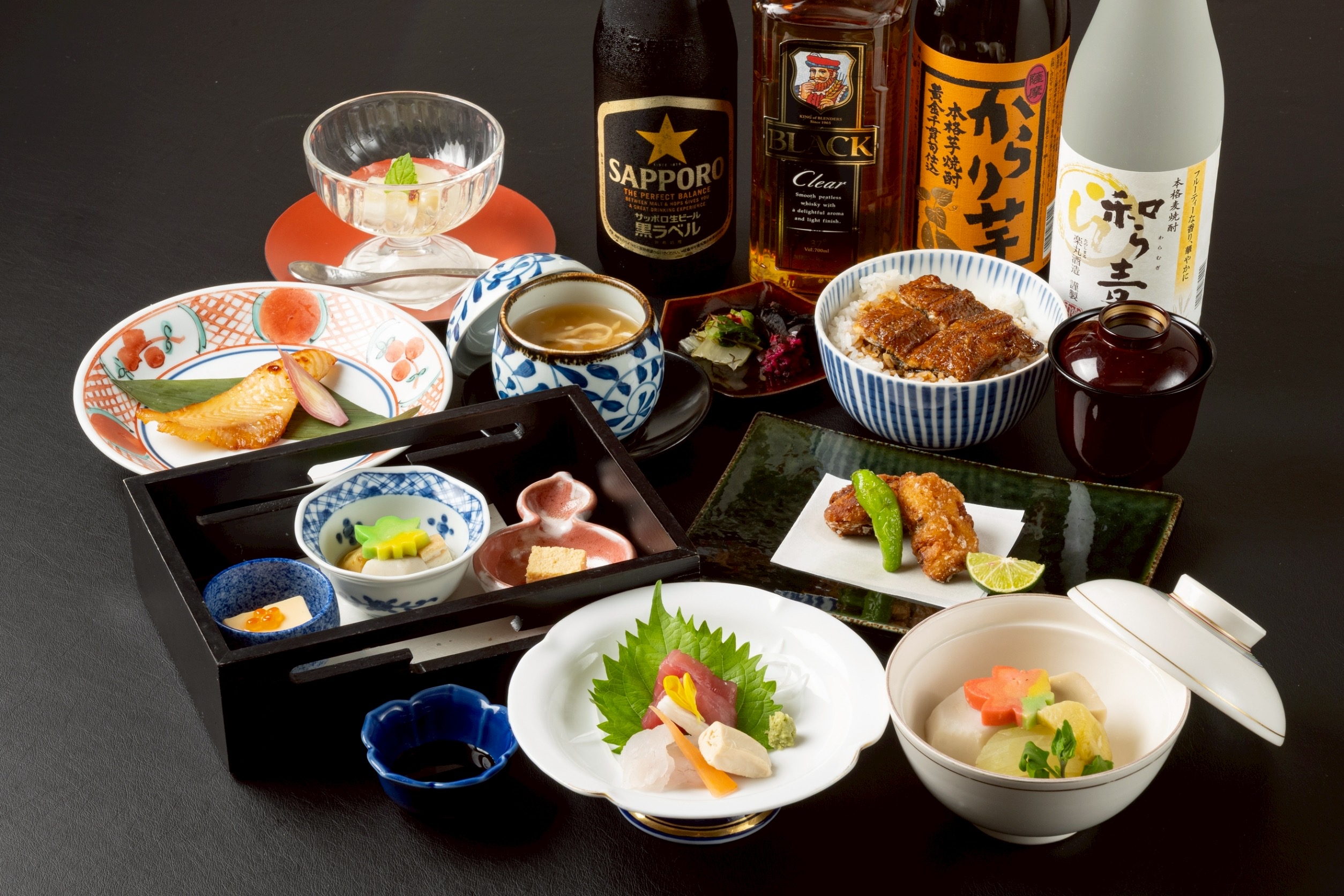 | 【前菜】3種盛り 【造り】本日入荷の鮮魚盛り合せ 【焼物】鶏の香味焼 【揚物】ふぐの唐揚 【煮物】季節野菜と名古屋コーチンつくね炊き合せ 【蒸物】茶わん蒸し 【ご飯物】ミニうなぎ丼 【水物】季節のデザート |